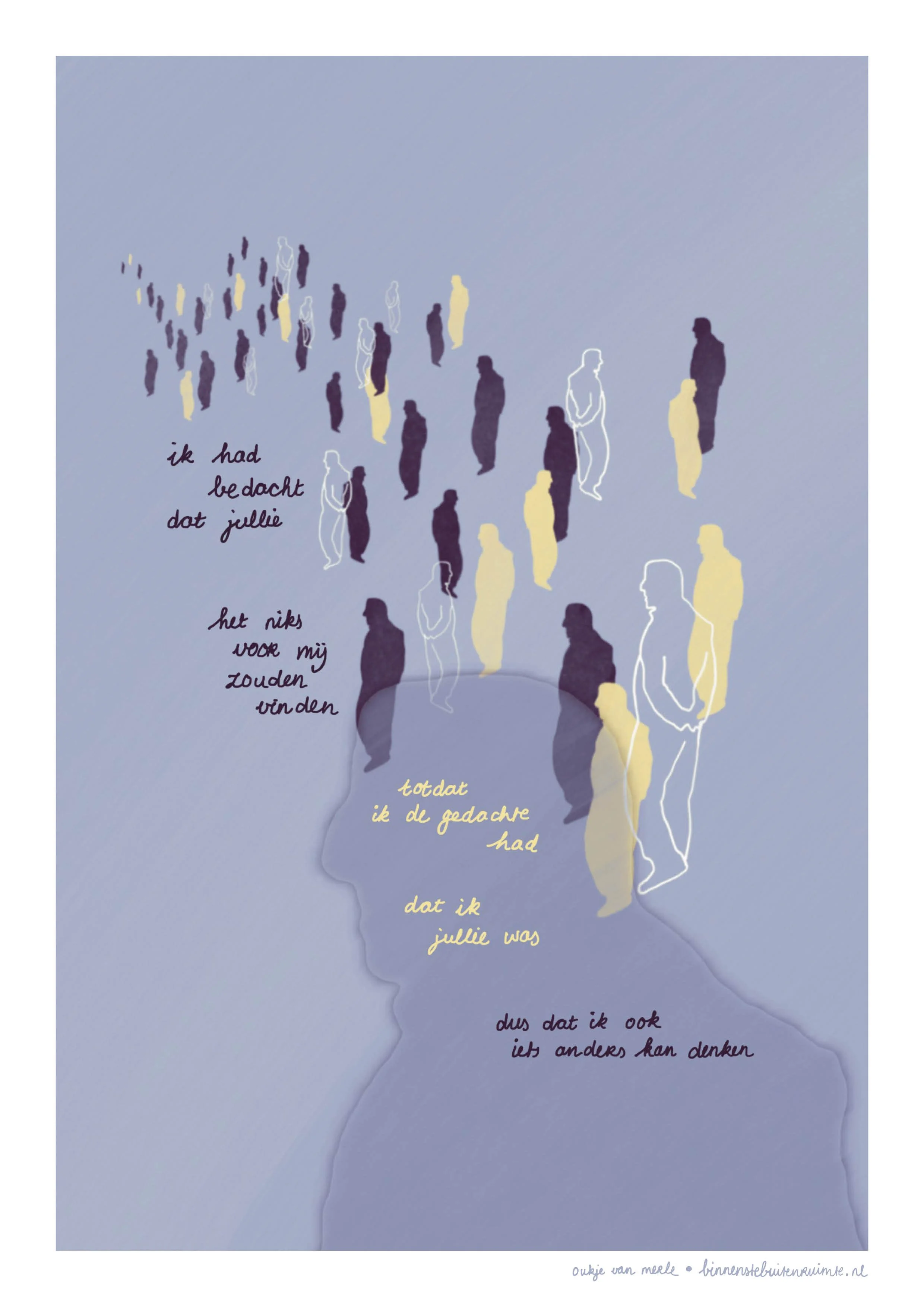‘‘Ik had bedacht dat jullie het niks voor mij zouden vinden, totdat ik de gedachte had, dat ik jullie was, dus dat ik ook iets anders kan denken.‘’
